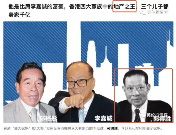 郭氏家族大家長(zhǎng)是新鴻基創(chuàng)始人郭得勝,郭得勝也是“香港四大家族”里唯一一個(gè)真正白手起家的人。