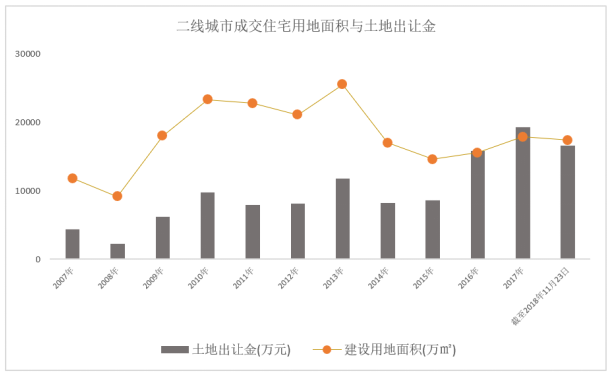 今年還有一個(gè)多月,預(yù)計(jì)12月二線城市還將收入不少于2000億元的土地出讓金,全年將略低于2017年的水平。