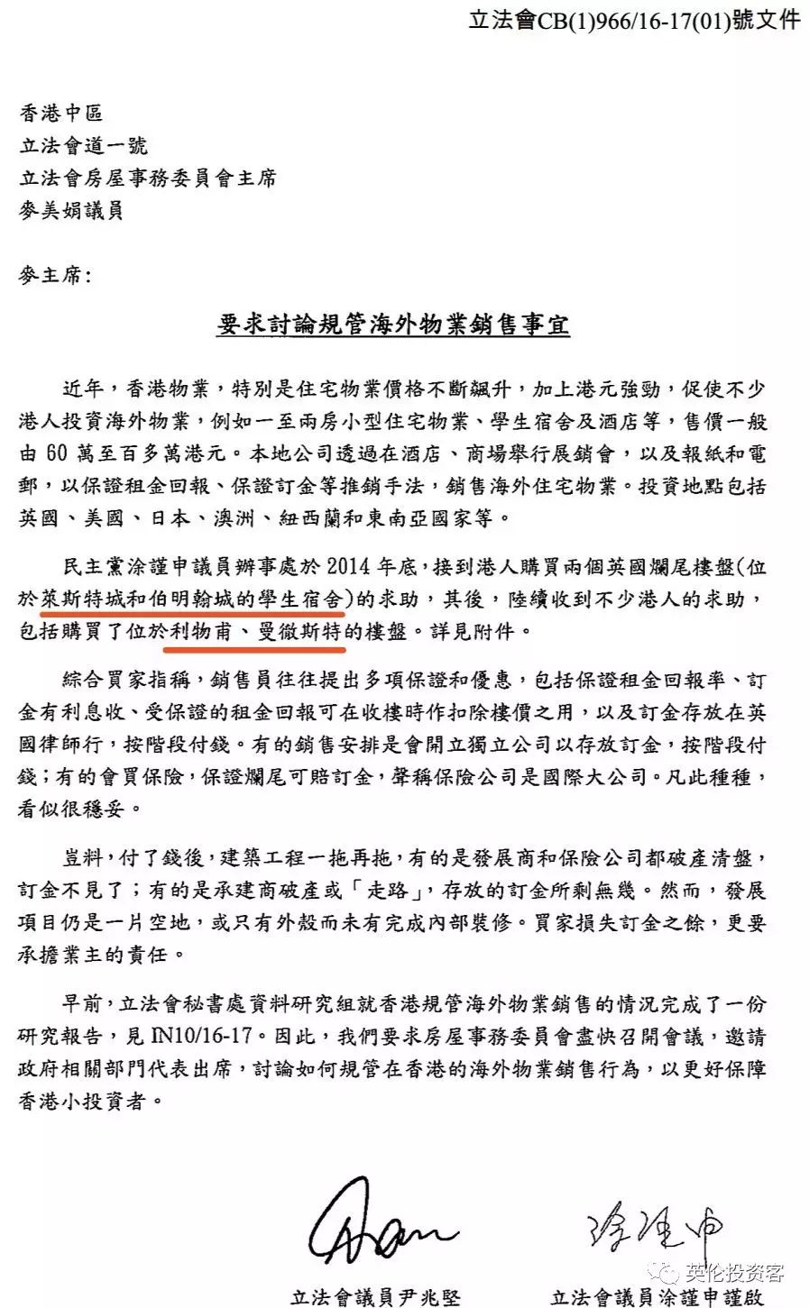 同時,香港立法會議員也建議英國當局未來和香港證券及期貨事務監(jiān)察委員會合作,去核實英國樓花項目的可靠性。
