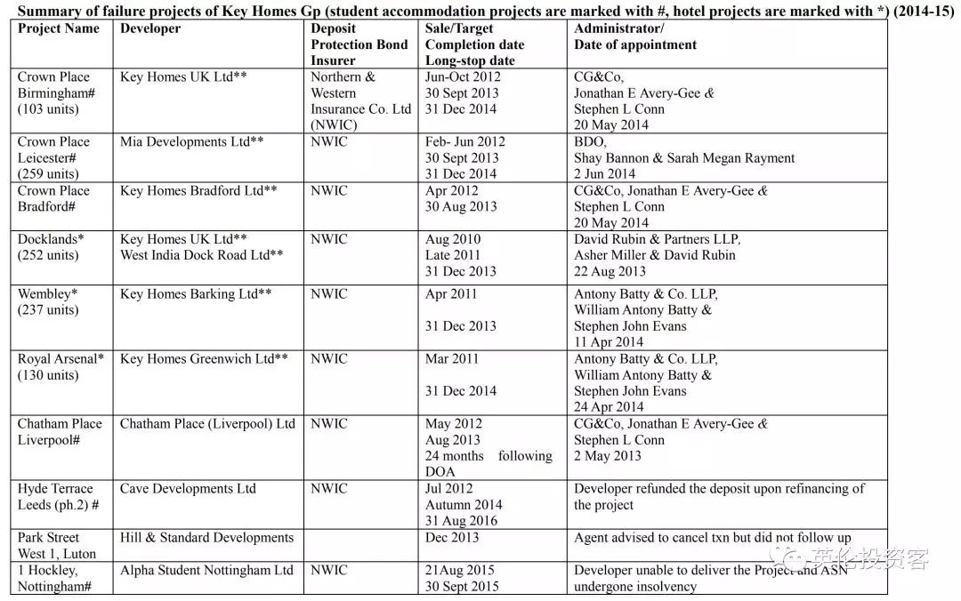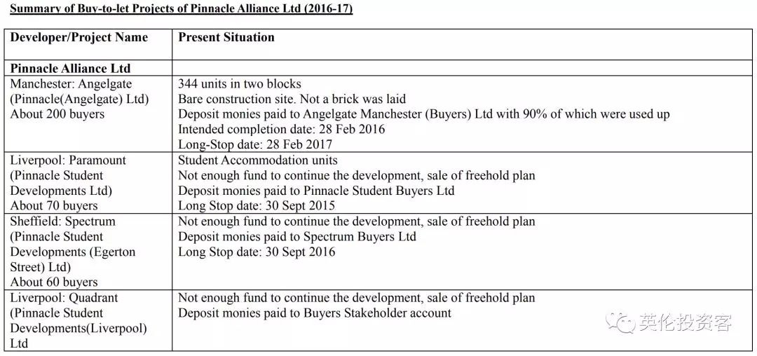 除此之外,同樣在英國北部開發(fā)三處期房項目的Absolute Living Developments也在2016年申請了破產(chǎn)清算。