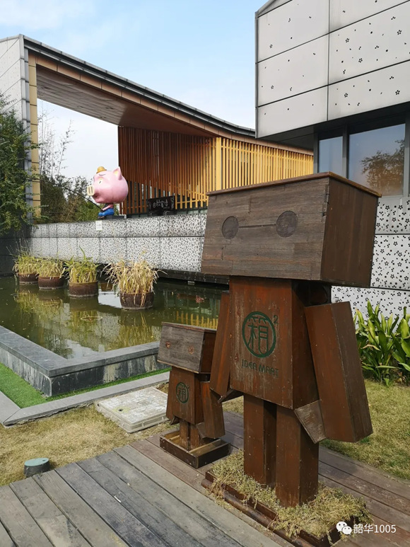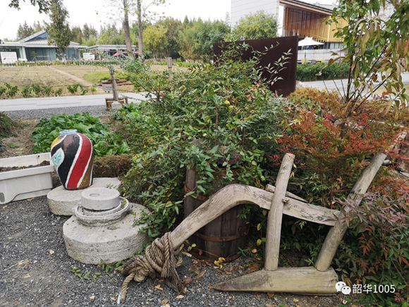 按照修舊如舊的方式,張誠選取舊址十座老房子進(jìn)行修繕和保護(hù),改做民宿,房內(nèi)陳列了他苦心搜集回來的特色農(nóng)具(家具),保留了村莊內(nèi)古井、池塘、原生樹木,雖然沒有古樹名木、名花異草,或大拆大填大建,或硬底鋪裝,但木頭圍欄,農(nóng)作物為景觀或景觀植物,熟悉的雞鵝鴨等家禽,讓我們驚訝的還有兒時常玩的“泥窯”……,一個個憨態(tài)可掬、形態(tài)逼真的卡通動物公仔點(diǎn)綴其間,最大限度地保持了原村落的自然風(fēng)情風(fēng)貌,還賦予了新時代時尚和活力。