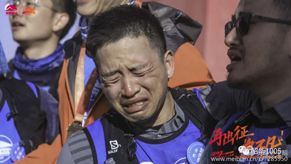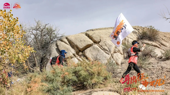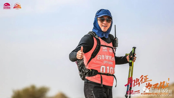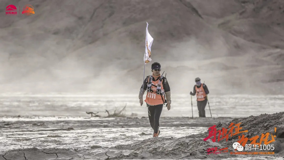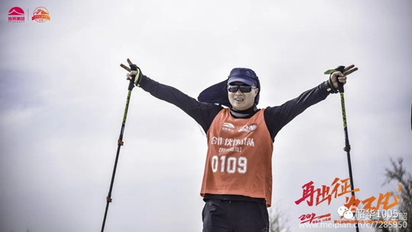 張毅:旗手,來自廣州,有多年多次馬拉松和越野、戈壁徒步的經(jīng)驗(yàn),速度、耐力無得頂,第一天一直遠(yuǎn)遠(yuǎn)拋離隊(duì)伍,以至教練不停的喊:張總,慢點(diǎn)!之后三天一直居中關(guān)照著每一位隊(duì)友。作為旗手,不管處于何等惡劣環(huán)境,4天來總是人在旗在,隊(duì)旗始終高高飄揚(yáng),成為33支參賽隊(duì)的一道亮麗風(fēng)景線,榮獲“風(fēng)尚獎(jiǎng)”實(shí)至名歸?;蛟S是過于自信,居然只帶跑鞋,以至腳后跟起了“水泡”,算是教訓(xùn)了。