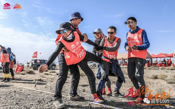 這是一堂生動(dòng)而富有實(shí)效的團(tuán)建課程! 要想快,一個(gè)人走,要想遠(yuǎn),一群人一起走。一個(gè)人沒受任何約束和干擾,可以更專注,可以走的更快。但戈壁徒步是一場(chǎng)持久的團(tuán)體賽,不主張一個(gè)人、一天的瞬間爆發(fā),而提倡耐心與堅(jiān)忍,目標(biāo)清晰,不放棄、不拋棄,相互幫助、相互鼓勵(lì),協(xié)助團(tuán)結(jié)如一人,平安順利抵達(dá)終點(diǎn)。“戈6”賽程規(guī)則明確規(guī)定:不允許奔跑,不允許單獨(dú)行走,保持緊密隊(duì)形,不允許突前或落單,前后距離控制在50米內(nèi),團(tuán)隊(duì)每天攜手沖線;每退賽一名隊(duì)員,每天扣除團(tuán)隊(duì)成績300分,并取消最高榮譽(yù)--沙克爾頓獎(jiǎng)。團(tuán)隊(duì)跳繩、負(fù)重前行、擔(dān)架前行、投壺等團(tuán)隊(duì)任務(wù)也非常考驗(yàn)團(tuán)隊(duì)的統(tǒng)一執(zhí)行力……。戈壁的魅力不在于超越自己,更重要的是鑄煉團(tuán)隊(duì),生動(dòng)而富有實(shí)效。