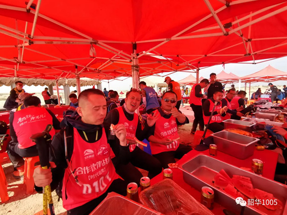任宏亮:本次挑戰(zhàn)賽最郁悶的人之一,來自沈陽的一位敦厚老實(shí)東北漢子,第一天走了20公里,膝蓋老傷發(fā)作,最后10多公里,醫(yī)療車多次停在面前,讓其退出,但在隊(duì)友鼓勵(lì)下他咬牙堅(jiān)持到終點(diǎn),可第二天還是不得不放棄了比賽。每每提及因他退賽而讓隊(duì)友痛失最高榮譽(yù)--沙克爾頓獎(jiǎng),眼眶總飽含熱淚,充滿內(nèi)疚!第三天,當(dāng)全隊(duì)沖過終點(diǎn),先回到營地的他,硬是拖著兩條大殘腿把我們的行李一個(gè)個(gè)地整整齊齊擺放在各自床鋪前,讓我們好生感動(dòng)!在西安機(jī)場(chǎng)分別前,他客氣地請(qǐng)我和周總、李總吃了一碗牛肉面,表示哥們只到了沈陽,他會(huì)親自開車去機(jī)場(chǎng)迎接,好酒好菜候著,期待。