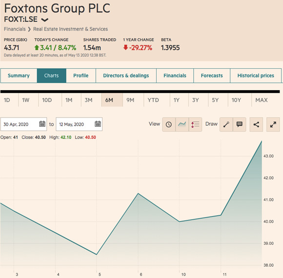 今早,倫敦房地產(chǎn)經(jīng)紀公司Foxtons股價上漲8.31%,線上交易平臺Purplebricks股價上漲11%。