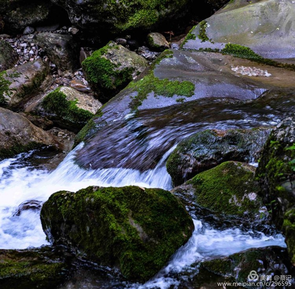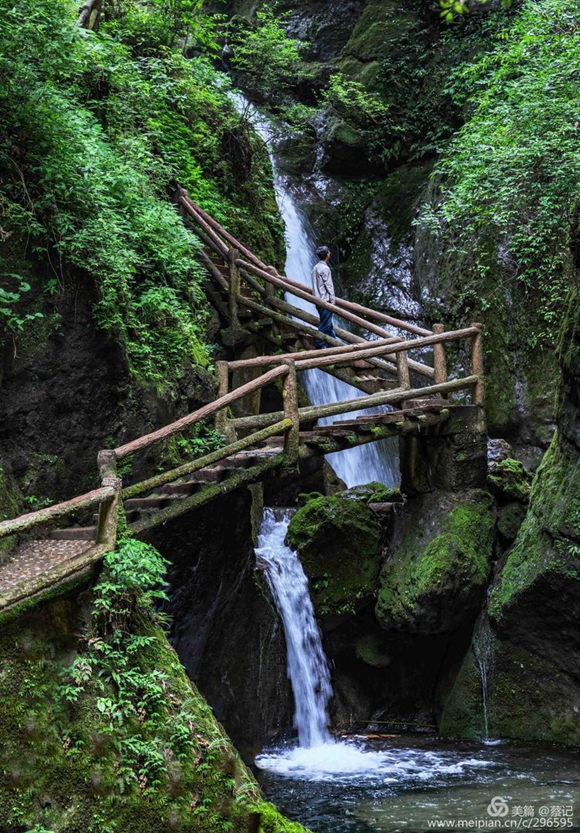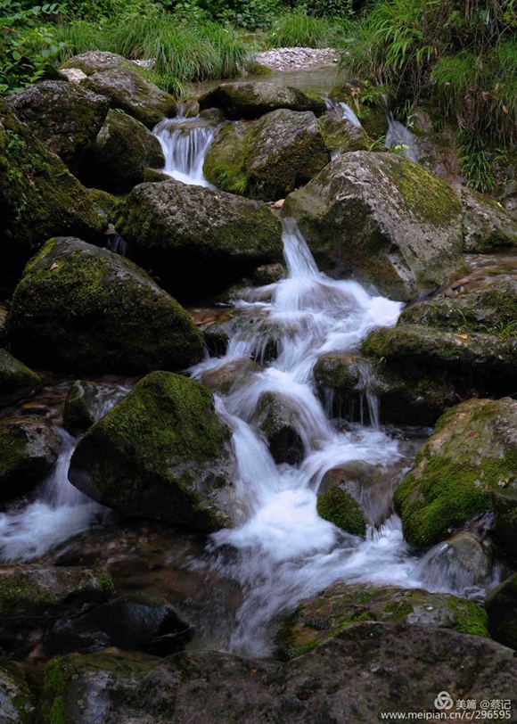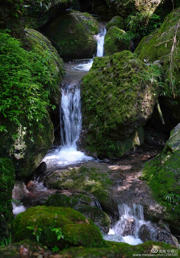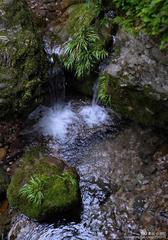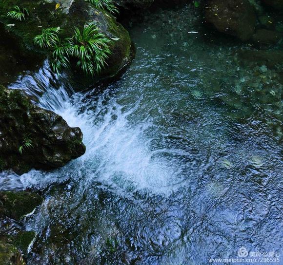 盡管是涓涓細流的跌落,也成了袖珍版的“飛流直下三千尺,疑是銀河落九天”。(唐·李白《望廬山瀑布》)。
