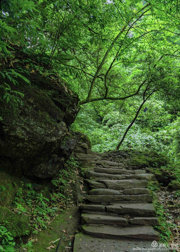 小徑蜿蜒于青幽山谷里,盤旋在蔥蘢樹林中。
