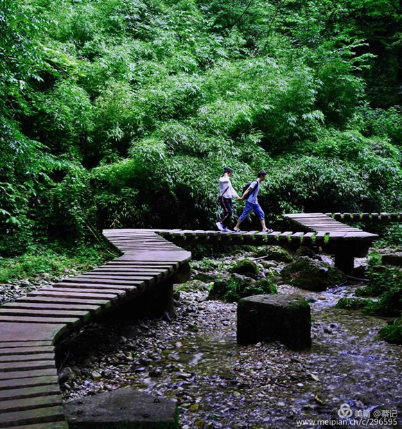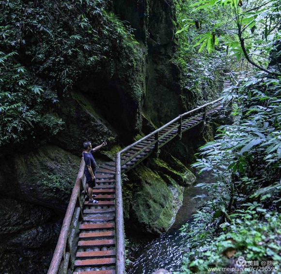 棧道穿越在河灘上,引領(lǐng)著游客的探幽腳步,見證了情侶的幽幽戀情。