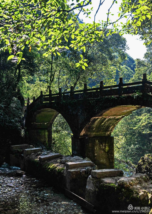 縷縷陽光穿透,圓拱和溪水相互輝映。