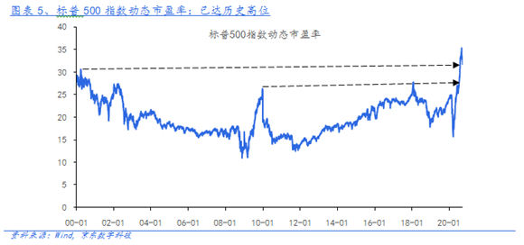 2)美股估值已高,市場(chǎng)看多情緒過熱。3月23日觸低之后,美股引領(lǐng)全球股市連漲5個(gè)月,在疫情沖擊、企業(yè)盈利滑坡下,三大股指先后創(chuàng)出歷史新高。從動(dòng)態(tài)市盈率來看,9月2日道指達(dá)到33.8倍、標(biāo)普500指數(shù)34.3倍,均已超越00年互聯(lián)網(wǎng)泡沫、09年金融危機(jī)后的峰值;納指68.1倍,超過09年金融危機(jī)后高點(diǎn),直追20世紀(jì)初的峰值。特別的,8月美債10年期利率觸及0.5%附近低點(diǎn)后反彈,但估值仍在上升,風(fēng)險(xiǎn)溢價(jià)持續(xù)走低,市場(chǎng)看多情緒已經(jīng)過熱。