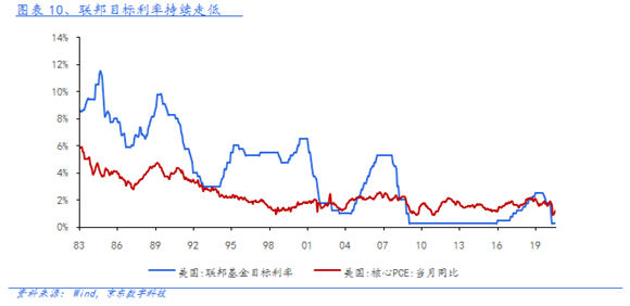 貨幣價(jià)格寬松已接近極限。當(dāng)前聯(lián)邦目標(biāo)利率已經(jīng)降至最低的0-0.25%,美債收益率也在0.5%-0.7%的歷史低位徘徊。做為世界貨幣,美聯(lián)儲(chǔ)不會(huì)允許美元進(jìn)入負(fù)利率,那將對(duì)美元體系構(gòu)成重大威脅。筆者在3月26日《全球市場(chǎng)大動(dòng)蕩,美聯(lián)儲(chǔ)救市能否成功?》中指出,"美債收益率關(guān)系到全球金融體系的壓艙石,如果美歐利差縮窄至0,對(duì)各國(guó)金融系統(tǒng)會(huì)是很大的沖擊,并對(duì)全球金融市場(chǎng)了帶來新的次生沖擊"。盡管美聯(lián)儲(chǔ)仍可使用YCC進(jìn)行利率曲線控制,但利率下行的空間已十分有限。此外,通脹也會(huì)制約利率的下行,5月以來核心PCE已持續(xù)回升。