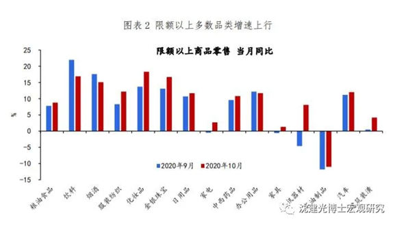 沈建光 11月16日,國家統(tǒng)計局公布10月宏觀經(jīng)濟(jì)數(shù)據(jù)。其中,社零、固定資產(chǎn)投資同比分別報4.3%、1.8%,均較9月回升1.0個百分點,工業(yè)增加值同比持平于6.9%。總體來看,供需兩端帶動中國經(jīng)濟(jì)延續(xù)復(fù)蘇勢頭,后續(xù)居民消費以及出口-制造業(yè)投資鏈條有望在復(fù)蘇過程中起到更重要的作用。