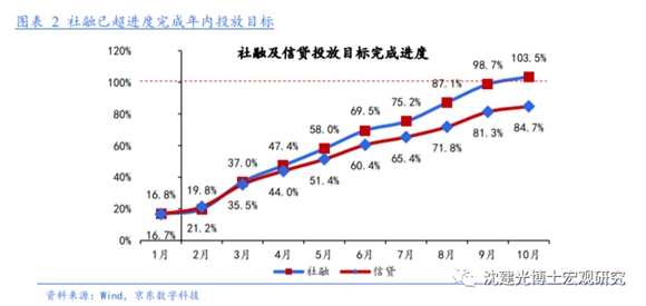 二是10月社融和信貸數(shù)據(jù)已有邊際收緊跡象。10月金融機(jī)構(gòu)人民幣貸款新增6898億、不及預(yù)期,正常的季節(jié)性調(diào)整之外,居民短期和中長期貸款均表現(xiàn)不佳,與近期監(jiān)管收緊地產(chǎn)融資、按揭和消費(fèi)貸審核趨嚴(yán)、房市銷售有所降溫有關(guān)。社融仍高于去年同期,但今年政府債券發(fā)行額度已接近兌現(xiàn)完畢、剩余月份對社融的支撐將明顯減弱;目前社融已提前兩月完成此前易綱行長預(yù)設(shè)的全年投放目標(biāo)(30萬億),年內(nèi)空間已然有限、預(yù)計(jì)社融存量增速未來將逐步下行。
