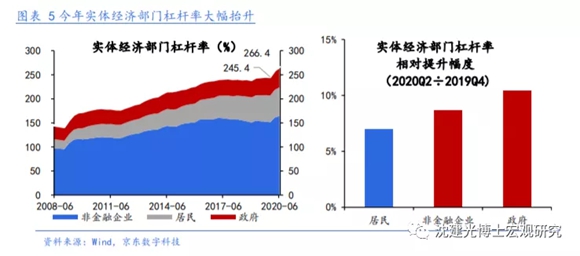 三是應(yīng)高度關(guān)注金融系統(tǒng)脆弱性。今年實(shí)體經(jīng)濟(jì)部門杠桿率大幅抬升,截至6月底達(dá)到266.4%、較去年末大幅上升21個(gè)百分點(diǎn);從相對變動來看,政府和企業(yè)部門杠桿抬升的相對速度較快,擴(kuò)張型財(cái)政貨幣政策在穩(wěn)增長的同時(shí),不可避免地加劇了金融體系的脆弱性;近期AAA級央企債券集體違約暴雷、引發(fā)信用債危機(jī),已說明當(dāng)前市場信心不足。
