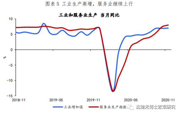 沈建光 12月15日,國(guó)家統(tǒng)計(jì)局公布11月宏觀經(jīng)濟(jì)數(shù)據(jù)。其中,社零、固定資產(chǎn)投資、工業(yè)增加值同比分別報(bào)5.0%、2.6%和7.0%,分別較10月回升0.7、0.8和0.1個(gè)百分點(diǎn)。總體來(lái)看,社零繼續(xù)修復(fù)、制造業(yè)投資亮眼、工業(yè)和服務(wù)業(yè)生產(chǎn)強(qiáng)勁,中國(guó)經(jīng)濟(jì)保持在復(fù)蘇軌道之上。