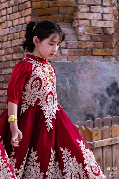 肉孜節(jié)(開齋節(jié))上身穿盛裝的女孩,純真而富于稚趣。