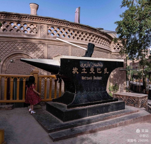 坎土曼(即砍土鏝,用于鋤地挖土的鐵制農(nóng)具)巴扎,鐵藝集市。以前只能加工坎土曼,故得名。