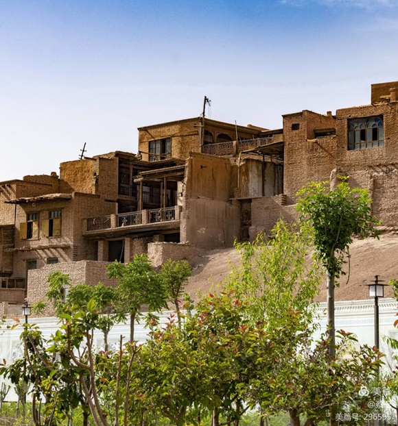 喀什干旱炎熱風(fēng)沙大,傳統(tǒng)民居是厚土墻平頂屋,后來也有磚房。