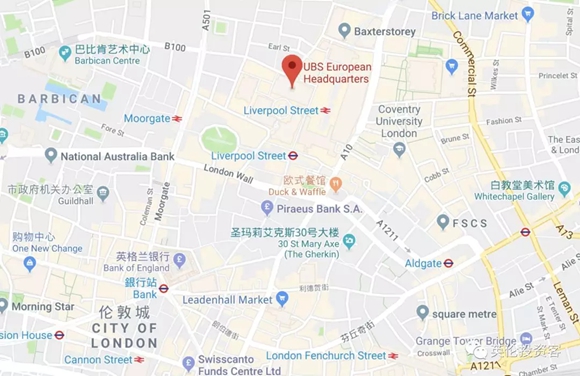 瑞銀總部大樓位于倫敦金融城核心地段,靠著Liverpool Street火車站及地鐵站。