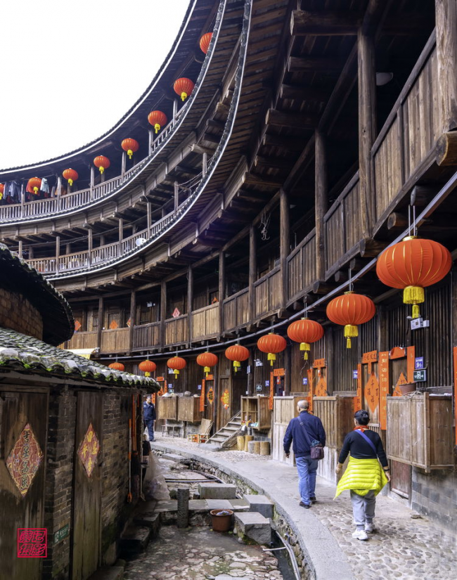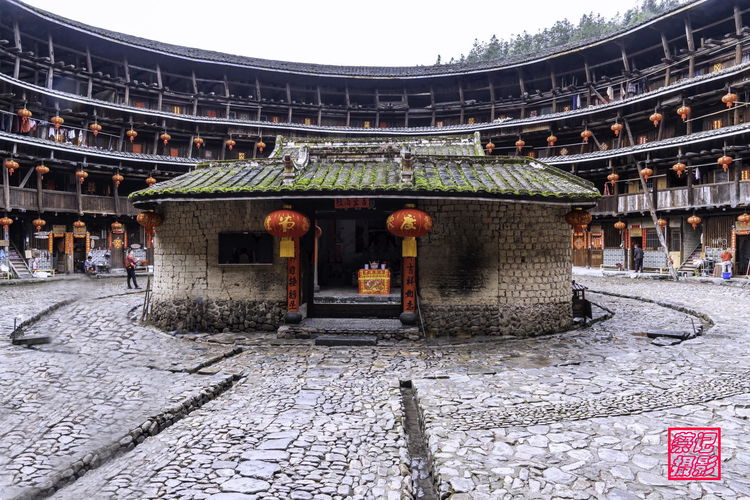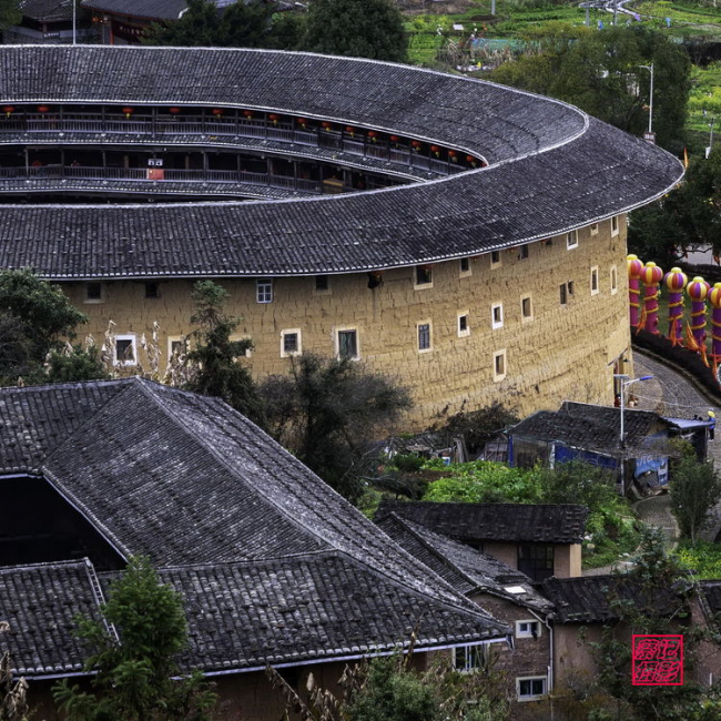 土樓是以未焙燒原狀土營造主體結(jié)構(gòu)的生土建筑,像是土地上生長起來的大蘑菇。樓內(nèi)藏風聚氣,冬暖夏涼。