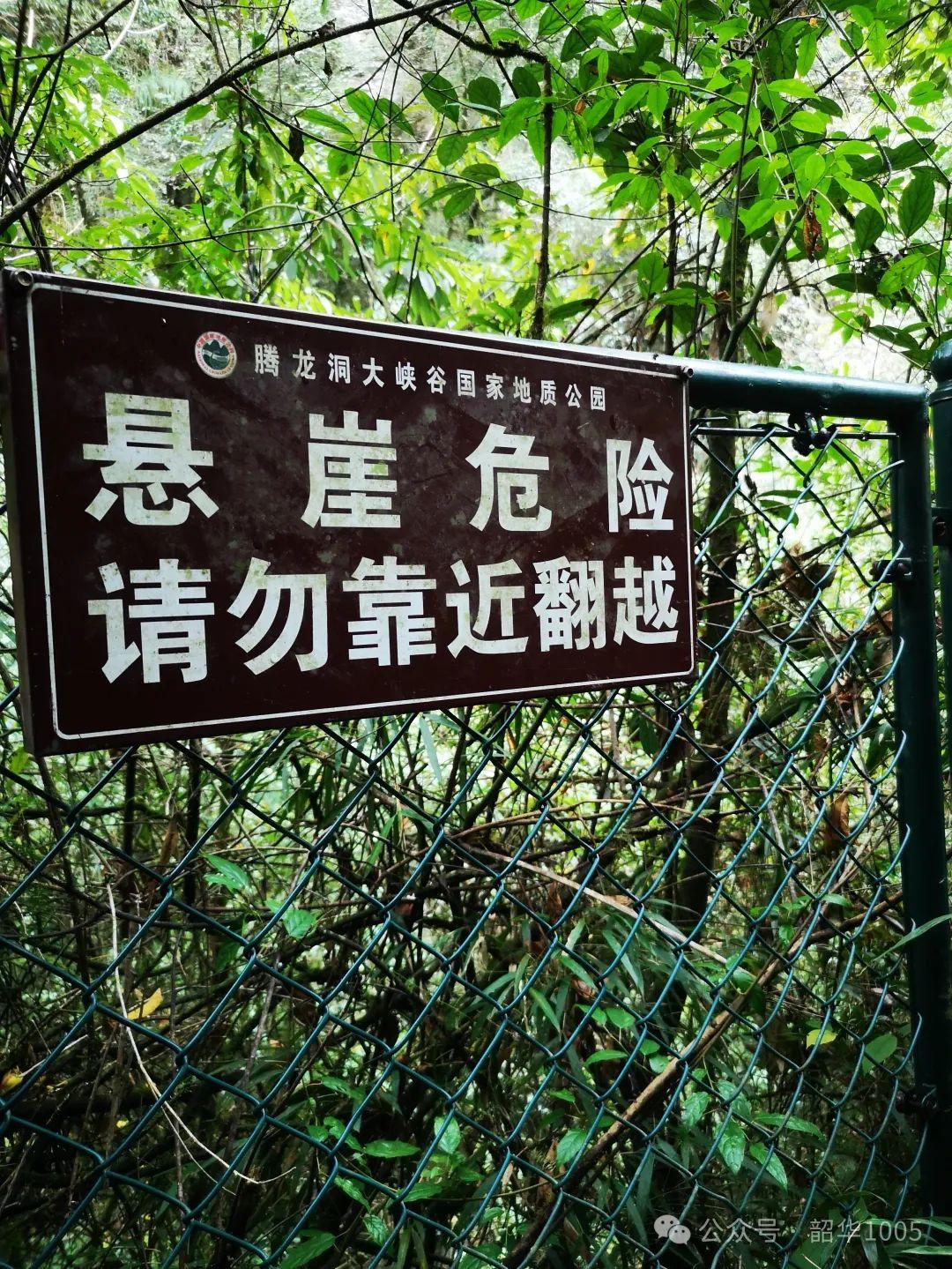 一邊是茂密的叢林,陡峭濕滑的山地斜坡,另一邊溝谷幽深……我們一只手柱著竹棍,另只手提心吊膽地緊抓周圍的樹枝,使勁一步步往上爬或往下走,小心再小心,千丈懸崖就在咫尺間,不過還好有茂密的喬灌木圍擋,也有地方政府做的安全警示牌和鐵欄柵,運氣不太壞的話安全是有保障的!