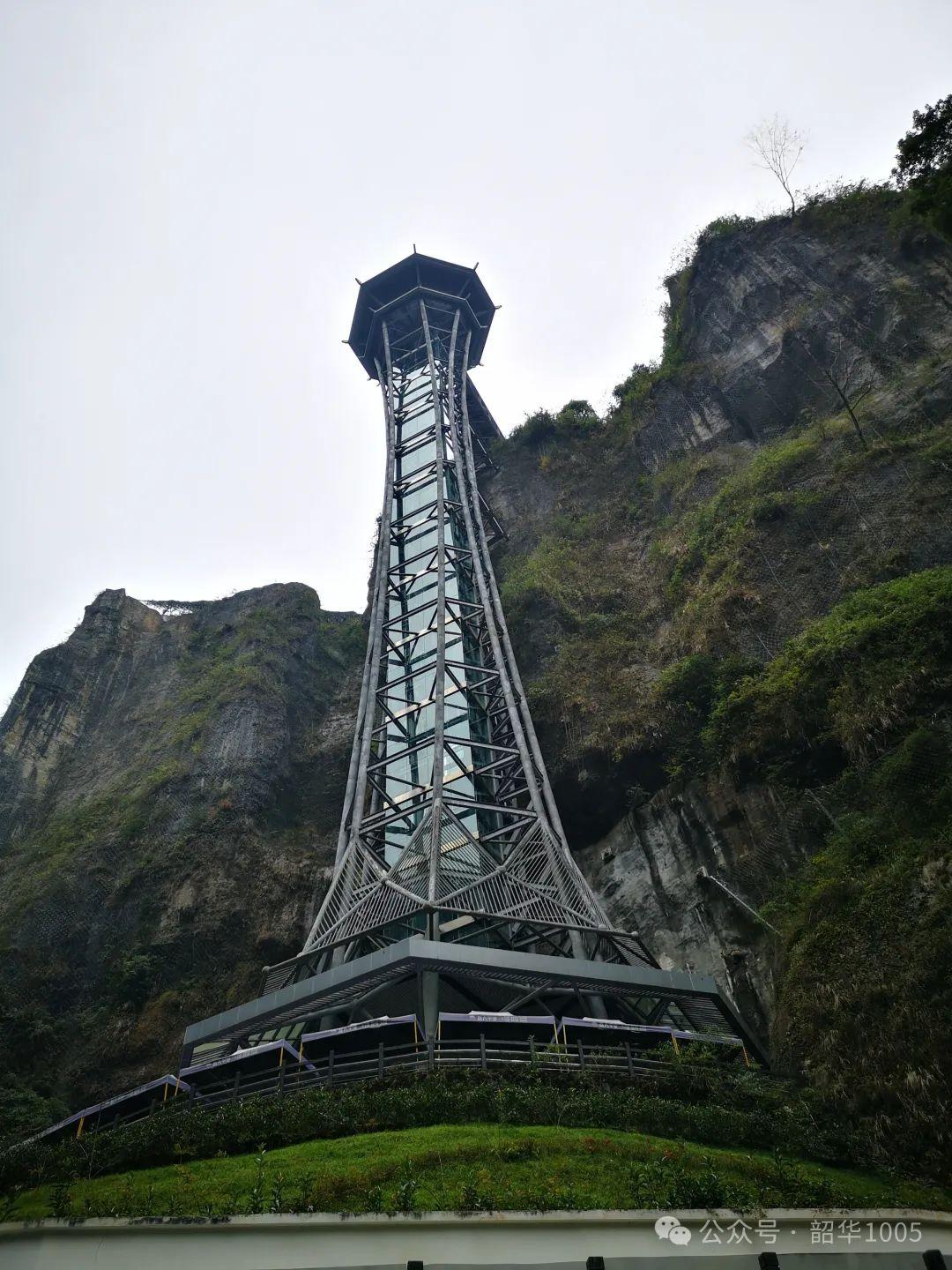 從“入地”的地縫走出,我們乘坐“小蠻腰”垂直觀光電梯直接“上天”---七星寨。為節(jié)省體力和時間,我們不敢逞能任性攀爬那999級陡峭的臺階,事實上也極少有人想著去省那區(qū)區(qū)的30元!