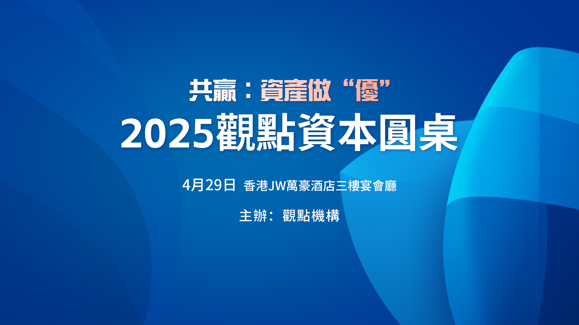 4月29日,以“共贏:資產(chǎn)做‘優(yōu)’”為主題,2025觀點(diǎn)資本圓桌將于香港JW萬豪酒店舉辦,在不確定中錨定確定,重塑屬于下一個(gè)時(shí)代的資產(chǎn)管理方法論。
