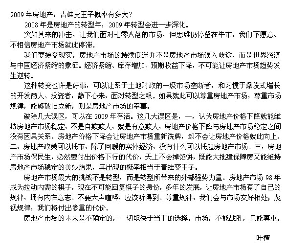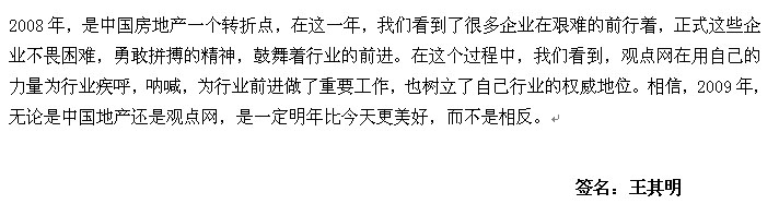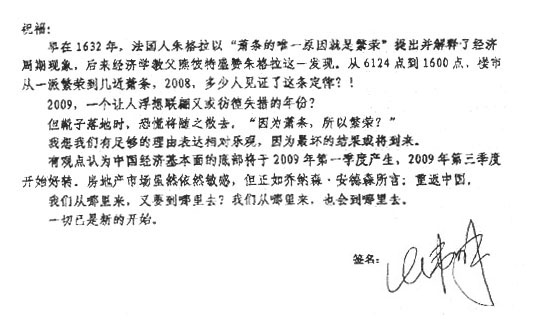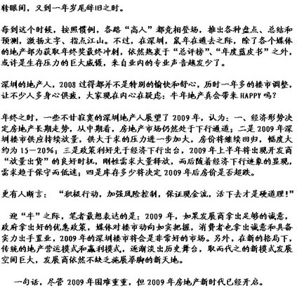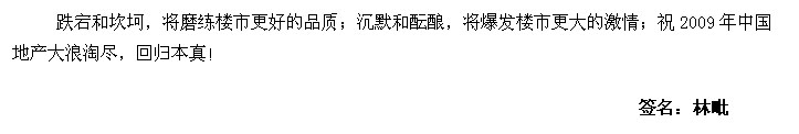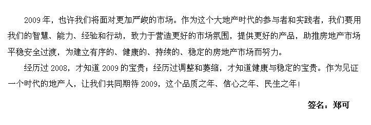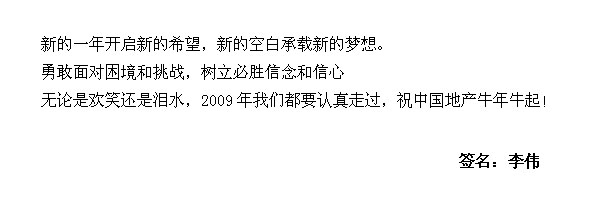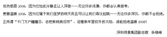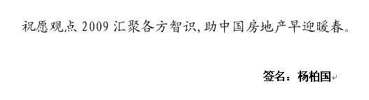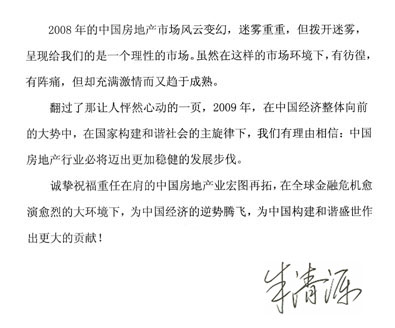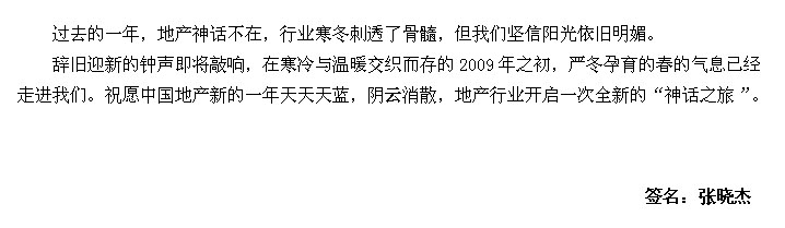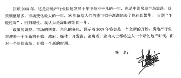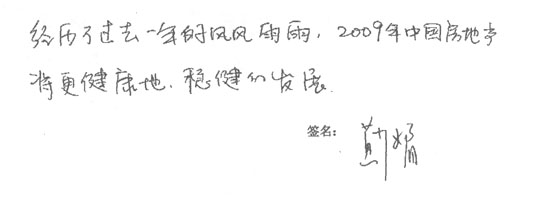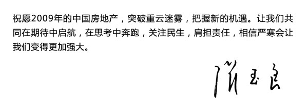 在2009的新春之際,我們又一次看到中國(guó)地產(chǎn)人堅(jiān)定的信念,看到中國(guó)地產(chǎn)人對(duì)中國(guó)地產(chǎn)最美好的愿景。